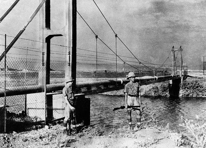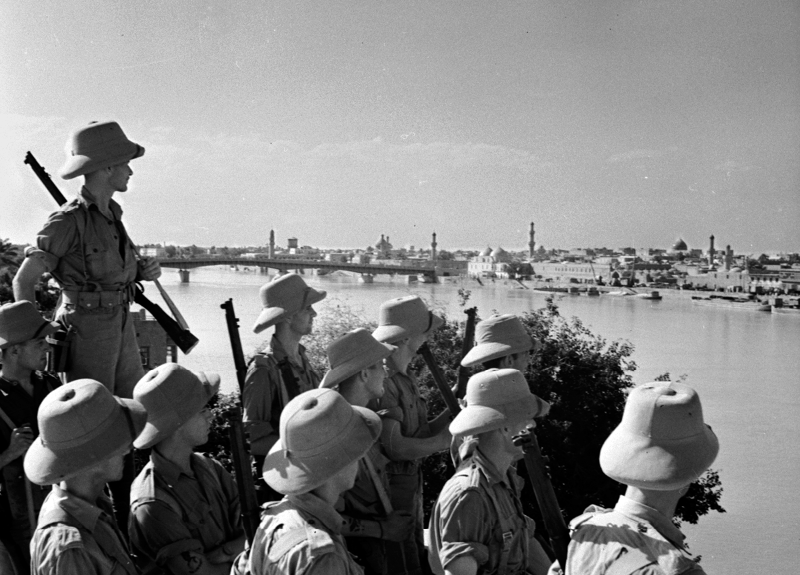 Victorious British soldiers look across the Tigris at Baghdad, 1941